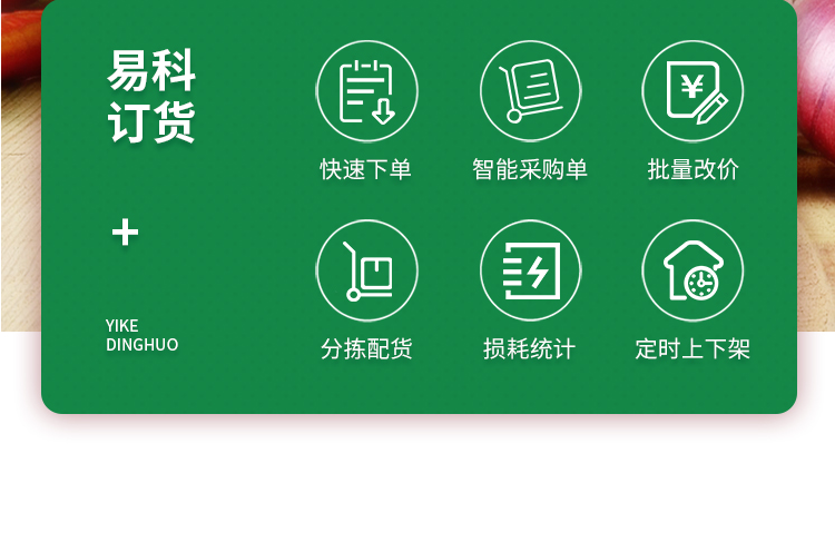 生鮮訂貨環(huán)節(jié)多、流程繁瑣,如果還采用傳統(tǒng)的抄寫(xiě)、保存、核對(duì)的方式,不僅費(fèi)時(shí)費(fèi)力,還容易出現(xiàn)錯(cuò)漏,財(cái)務(wù)數(shù)據(jù)也難以監(jiān)管,出現(xiàn)錯(cuò)漏也無(wú)法責(zé)任到人,這樣是不利于商家發(fā)展。現(xiàn)如今大家也都體會(huì)到了,手機(jī)下單有多方便?客戶(hù)打開(kāi)微信隨手一點(diǎn)即可下單,商家即可配送。易科訂貨歡迎您的咨詢(xún)...