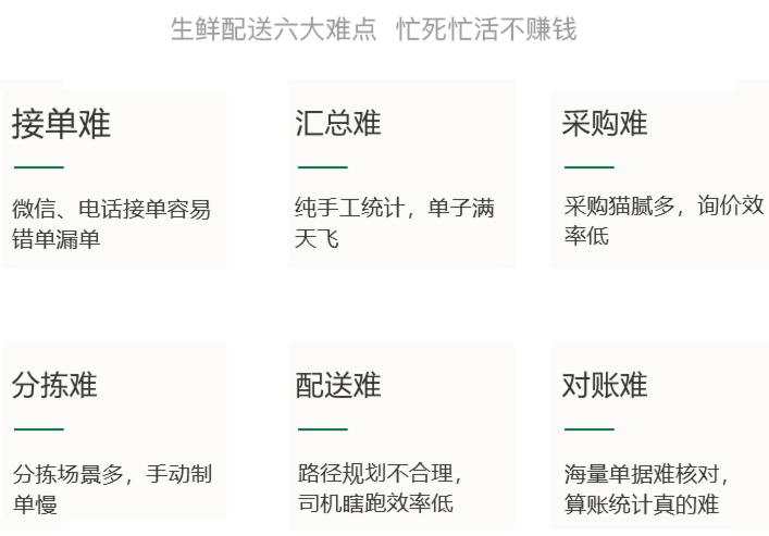 生鮮配送系統還包含,智能定價、訂單管理、采購統計、智能分揀+配送、數據管控等功能,還可以高效地整合訂單、財務、采購、分揀、配送,同時整合供應商管理、門店訂貨、配送。一般來說,生鮮配送軟件的功能越多,結構越優化,成本也越高。